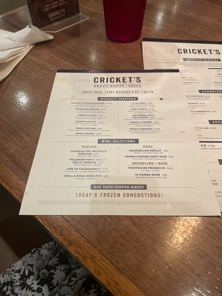 Welcome to Cricket's Grill & Draft House, a premier American dining destination nestled in Waco, TX. Offering a vibrant menu ideal for lunch, dinner, and late-night cravings, Cricket’s is the perfect spot for food lovers and craft beer enthusiasts alike. The diverse offerings range from hearty pasta dishes to mouthwatering chicken sandwiches, each crafted with care to ensure satisfaction.